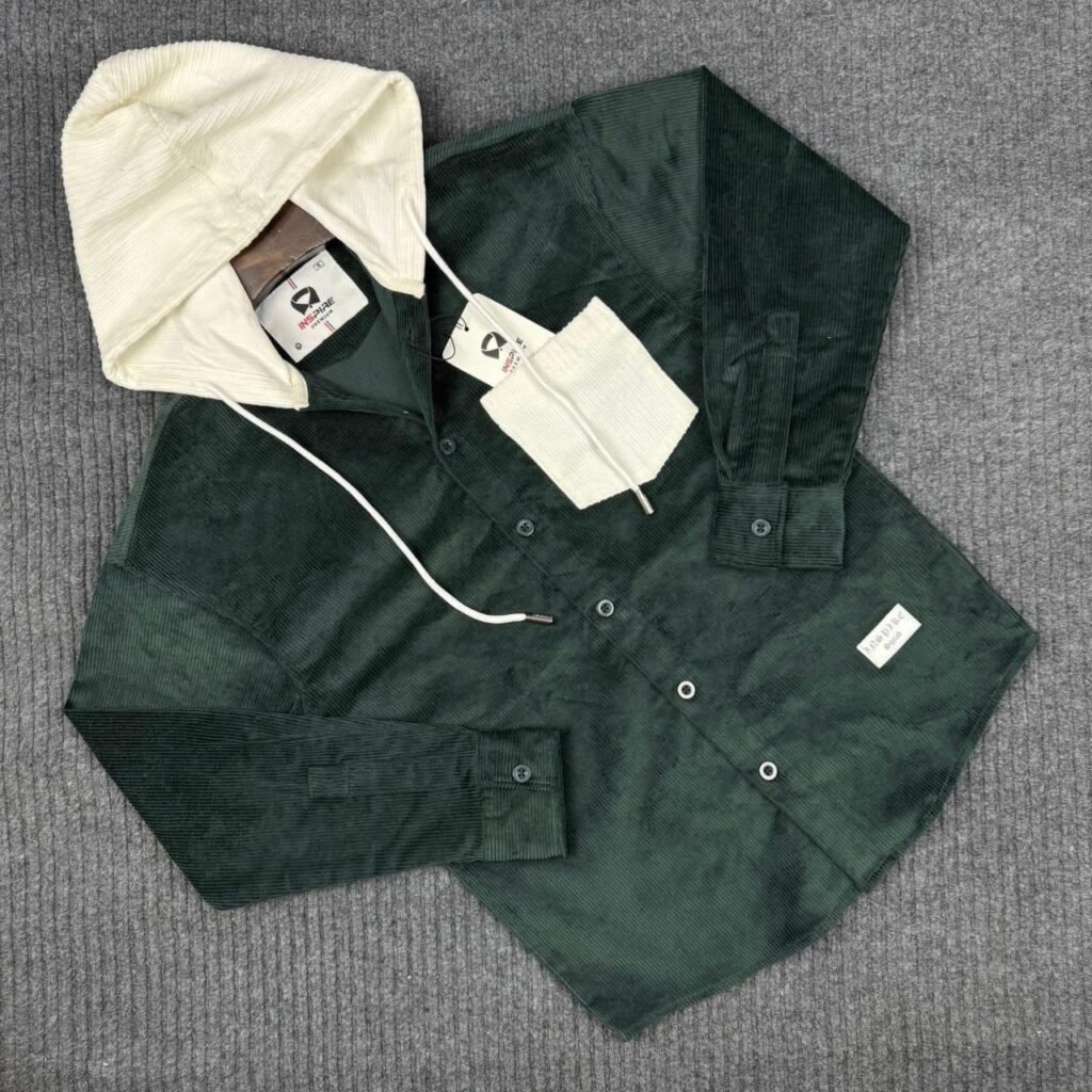 Men’s Jackets Corduroy Hooded Shirt (Bottol Green Color)