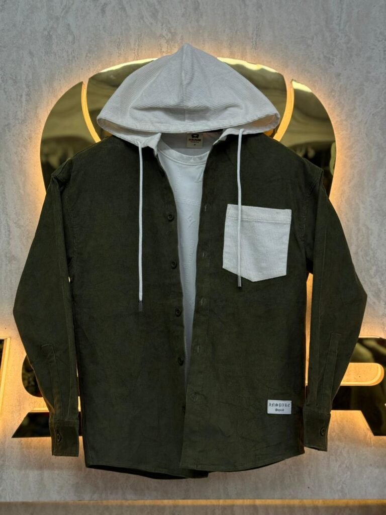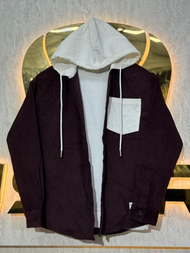 Men’s Jackets Corduroy Hooded Shirtএকটি আধুনিক ও ট্রেন্ডি পুরুষদের করডরয় হুডেড শার্ট/জ্যাকেট।